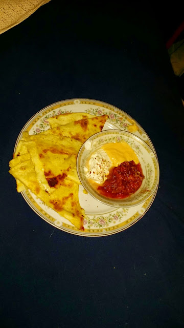 For dinner I had a cheese quesadilla and a salad with some buffalo ranch. I know I know probably a bad choose on that fat ass dressing. But oh well I'm trying here!